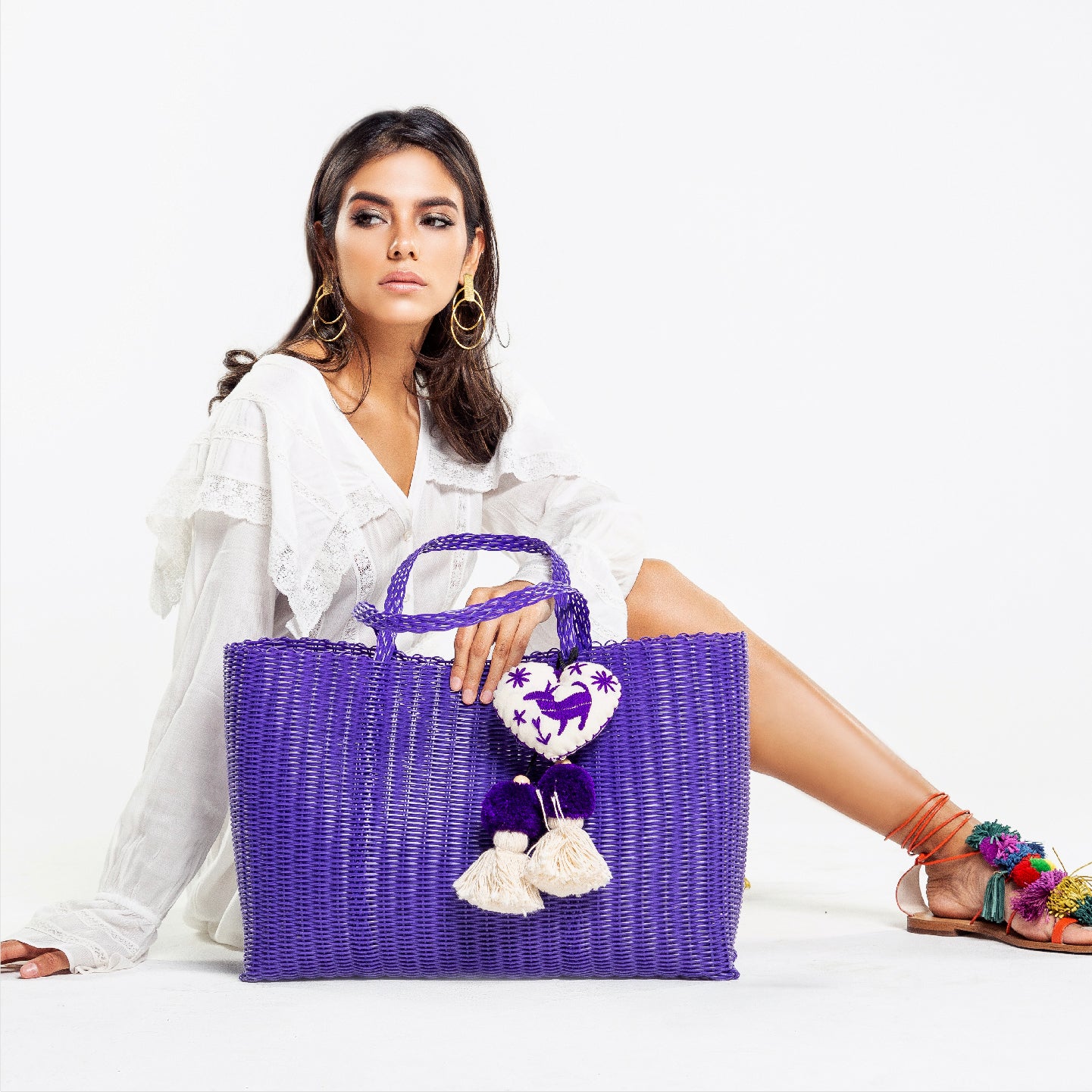 Each heart shaped pompom is carefully embroidered by our young students. Carry everything you need for a day in the sun and celebrate traditions and diversity.