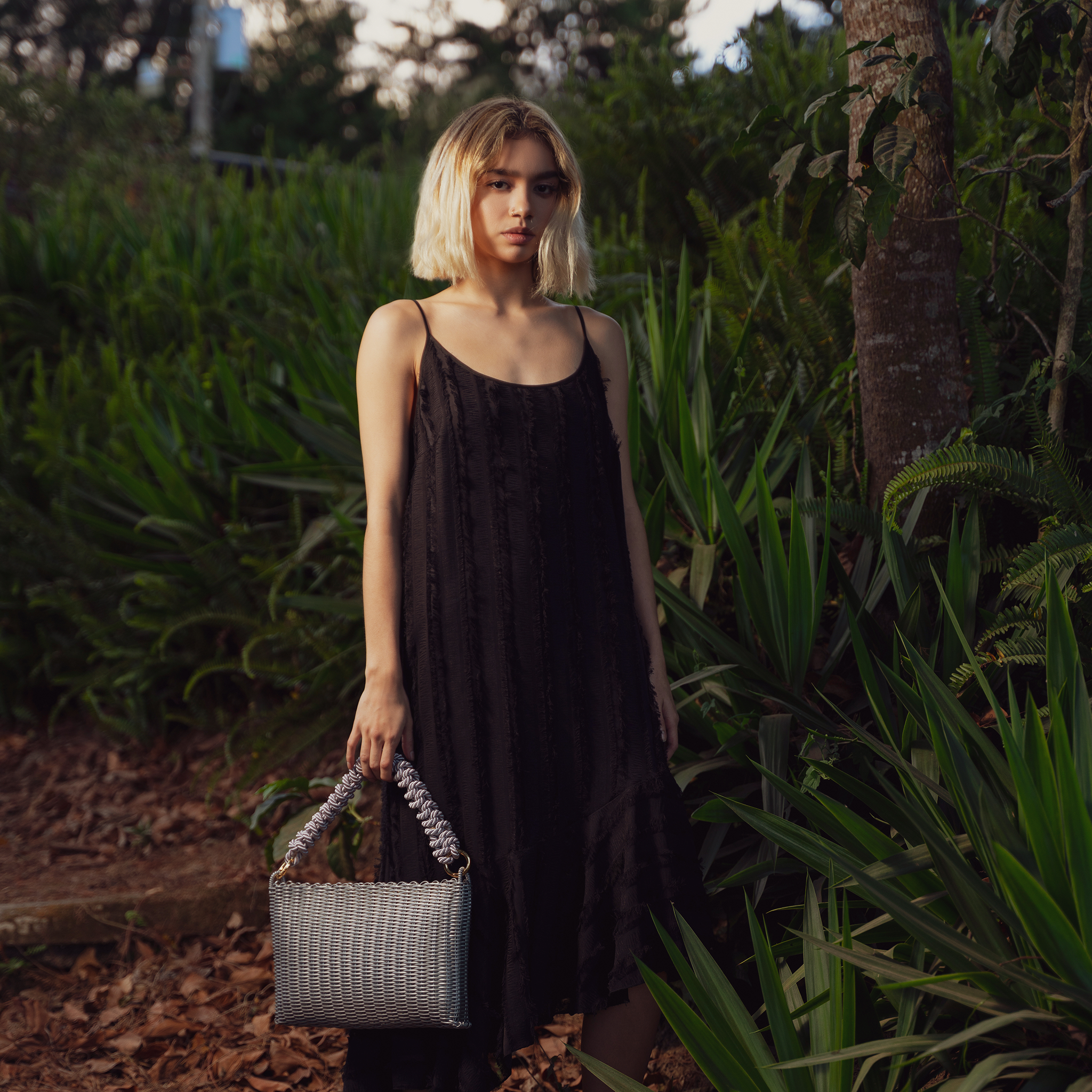 Style your way into life with an easy to match piece. This is a neutral handwoven clutch with golden hardware and removable knotted strap.